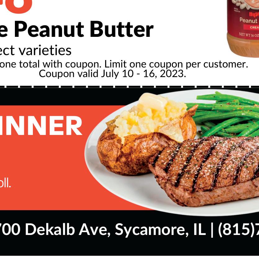 3 MIDWEEK The MidWeek / shawlocal.com/midweek-news • Wednesday, July 12, 2023 Visit us at meatplace.com for our weekend specials. Post Late Wednesday evening or early Thursday morning. July 13th - July 15th , 2023 Hours: Mon–Sat 8am–7pm; Closed Sundays & Major Holidays Gourmet Meats and Specialty Food Store 1106 N. 1st, DeKalb 815-756-5852 INBODEN’S