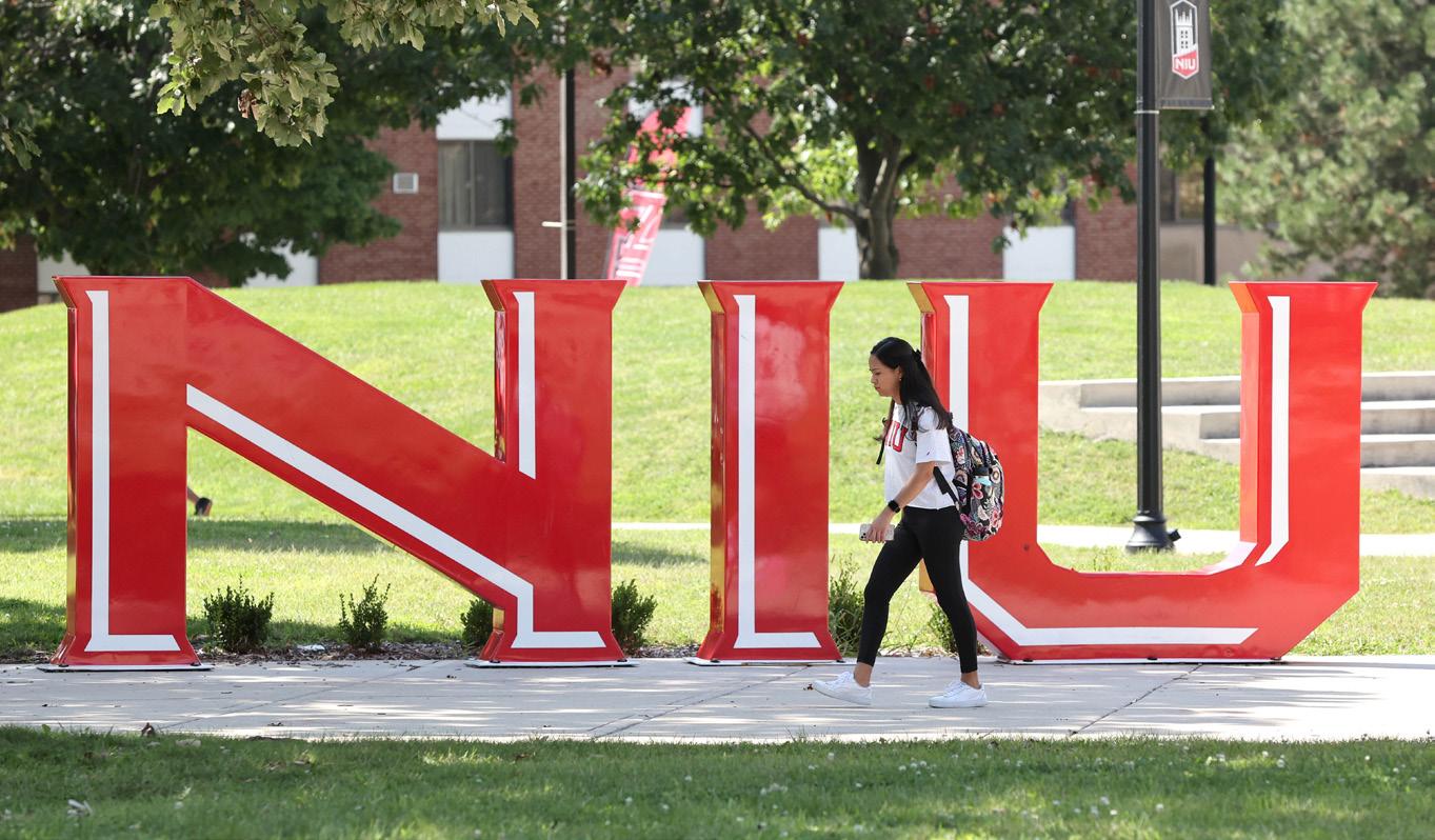 A Northern Illinois University student walks between classes Aug. 24, 2022, in DeKalb.