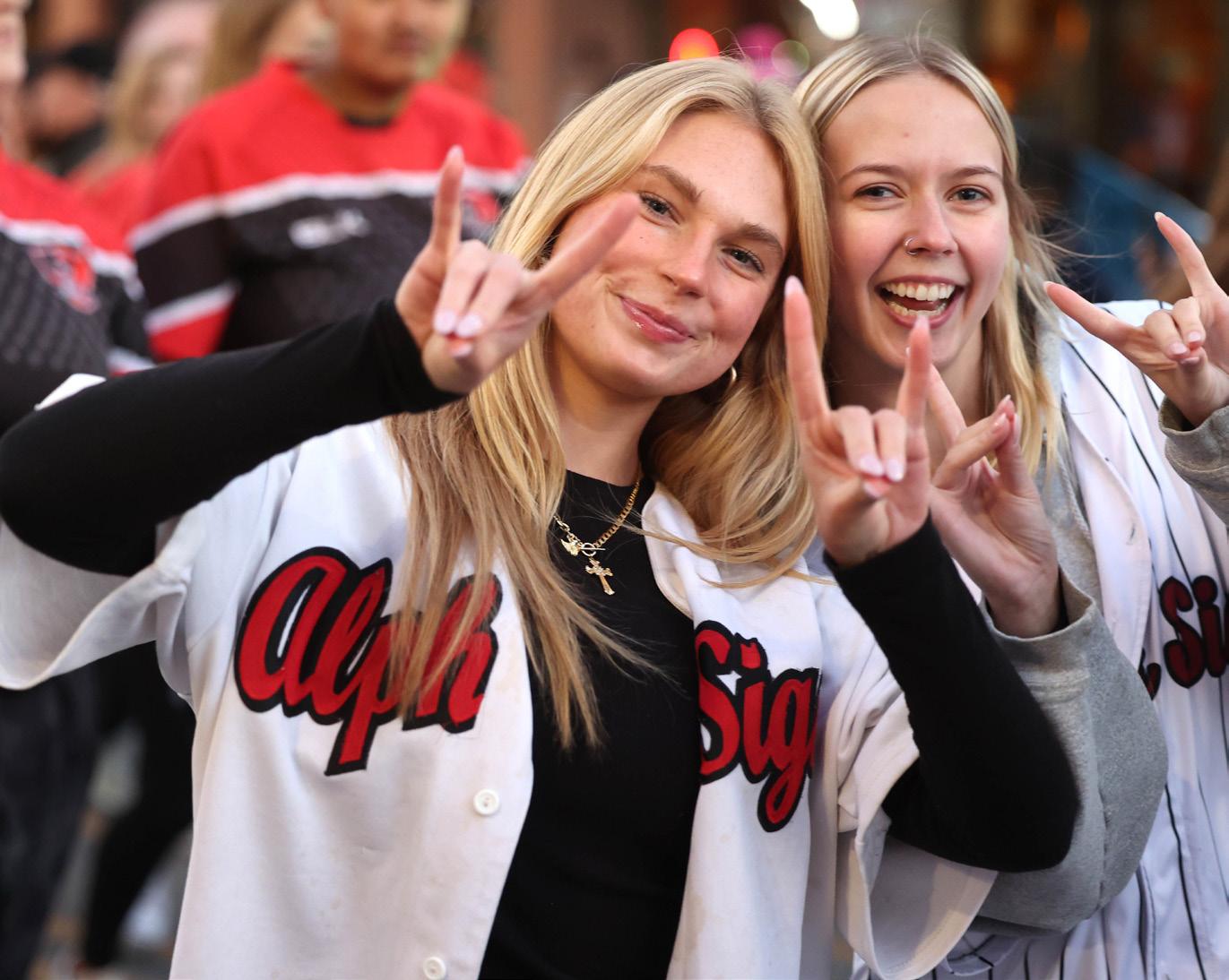 Members of the Northern Illinois University color guard perform Oct. 17 with the marching band in downtown DeKalb during the Huskie Homecoming Block Party. See photos, page 6.