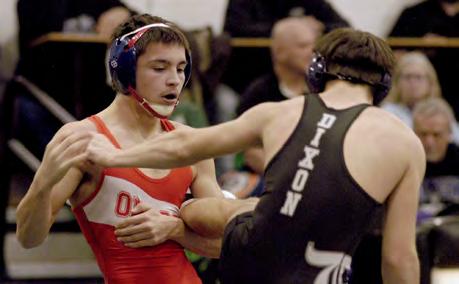 With the Big Northern Conference championship on the line against Dixon on Jan. 21 in Rock Falls, Oregon got off to a slow start but took the lead after the second match and extended it in the third match. But that was the end of the scoring for Oregon until the third from the last match, and the Dukes crushed the Hawks 61-17, taking the conference title for the second year in a row.
