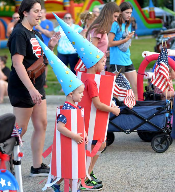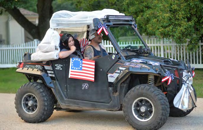 ABOVE: Natalie Siebel’s ATV was topped with a white powdered wig in an attempt to portray Thomas Jefferson in Grand Detour’s sixth annual Golf Cart Parade on July 5.