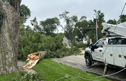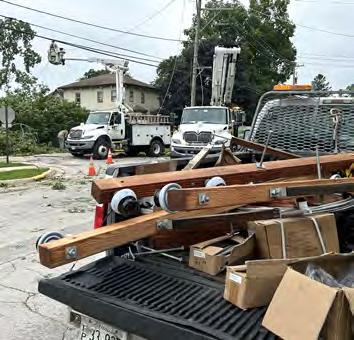 ComEd crews were busy Tuesday repairing downed electrical lines and poles in Byron following Monday night’s storm.