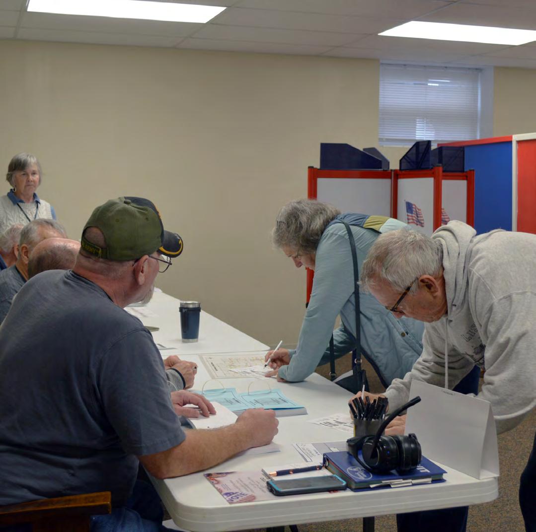 “This is where we vote,” Hinrichs told the club members. “These election judges are going to share with us a little bit about how voting works.”