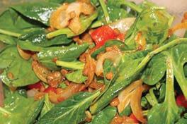 Put the spinach in a bowl and dress it with a mixture of olive oil and lemon juice, according to your taste. Place the warm lentil mixture over the spinach and add an extra drizzle of lemon juice, as well as salt, paprika, and pepper, according to your preference.