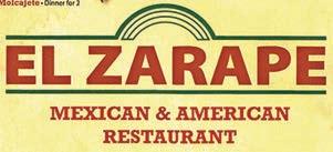 El Zarape has been serving the finest, freshest authentic MexicanAmerican cuisine since 2000. Using only the best ingredients and family recipes for dine in, carryout and catering of all your favorites. El Zarape offers outdoor dining in a freshly updated and inviting outdoor pavilion that is also perfect for gatherings. We are located at 1206 13th Ave., Mendota. Winter hours are Monday to Wednesday 11 a.m. to 8 p.m., Friday & Saturday 11 a.m. to 9 p.m. and Sunday 10:30 a.m. to 8 p.m. Call us at (815) 539-5985.
