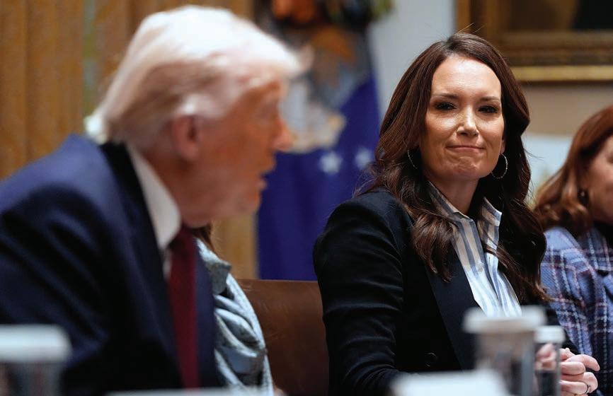 President Donald Trump speaks during a roundtable on farm subsidies in the Cabinet Room of the White House in Washington, as Agriculture Secretary Brooke Rollins listens