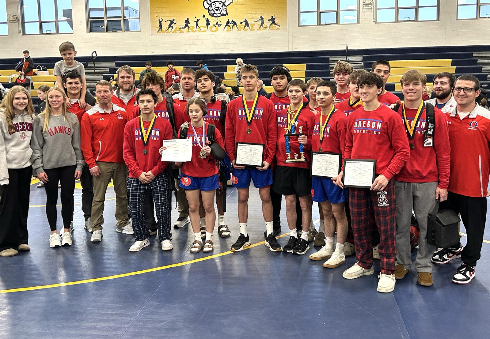 Oregon took second place behind Yorkville Christian at the Polo Wrestling Invitational on Jan. 10, at Polo High School. – Shaw Local News Network