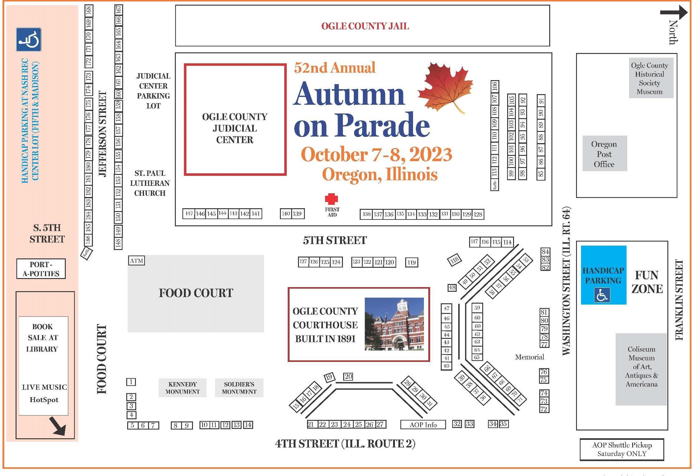 Autumn on Parade Market began 52 years ago with seven exhibitors on the historic Ogle County Courthouse lawn, and has grown to over 180 booths!