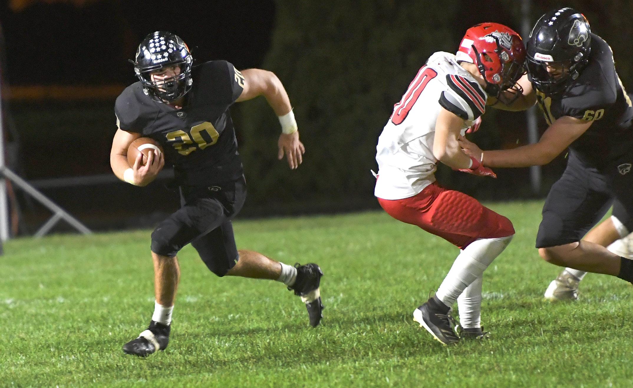 Jaxson Kempel, Will Birchen and Levi Burkholder led the Wildcatz defense with 11 tackles each. Ethan Petta had a pair of interceptions, and Kempel and Hunter Miller also picked off passes.