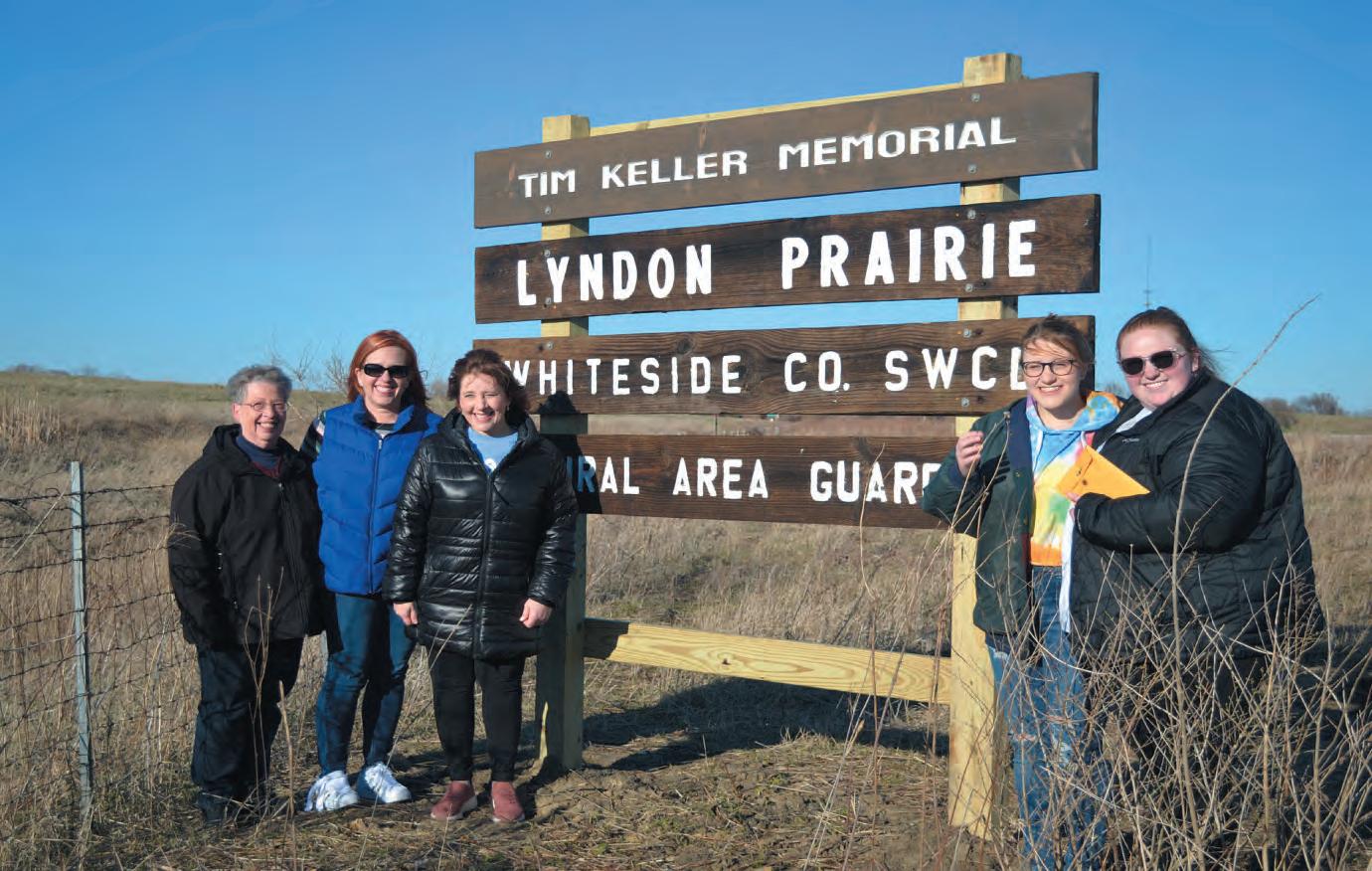 Thenewsign,visiblefromtheroadwayonI-88eastboundandacouple milespasttheIL-78exit, reads:Tim KellerMemorial,LyndonPrairie, WhitesideCo.SWCDandNaturalArea Guardians.It’safittingtributetoaman whodedicatedhislifetoconservation andpreservationandwas known locallyasthe“GodfatherofthePrairie.”
