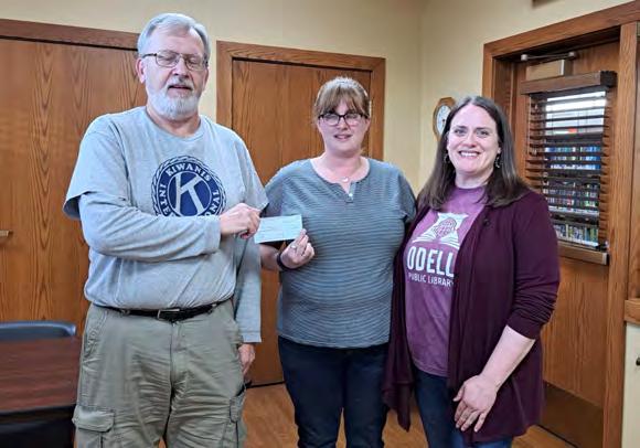 LEFT: Morrison Kiwanis President Steve Davis (left) presents a $200 check to Katie Rider and Christina Snyder, the new director of tje O’Dell Public Library. The Kiwanis Club meets at 6 p.m. the first Tuesday of each month at the O’Dell Public Library. Guests are welcome. FAR LEFT: Davis presents a $500 check to Carrie Melton of April House. Kiwanis members said they are happy to support the Morrison community and remind everyone to stop in and tour April House’s new location.