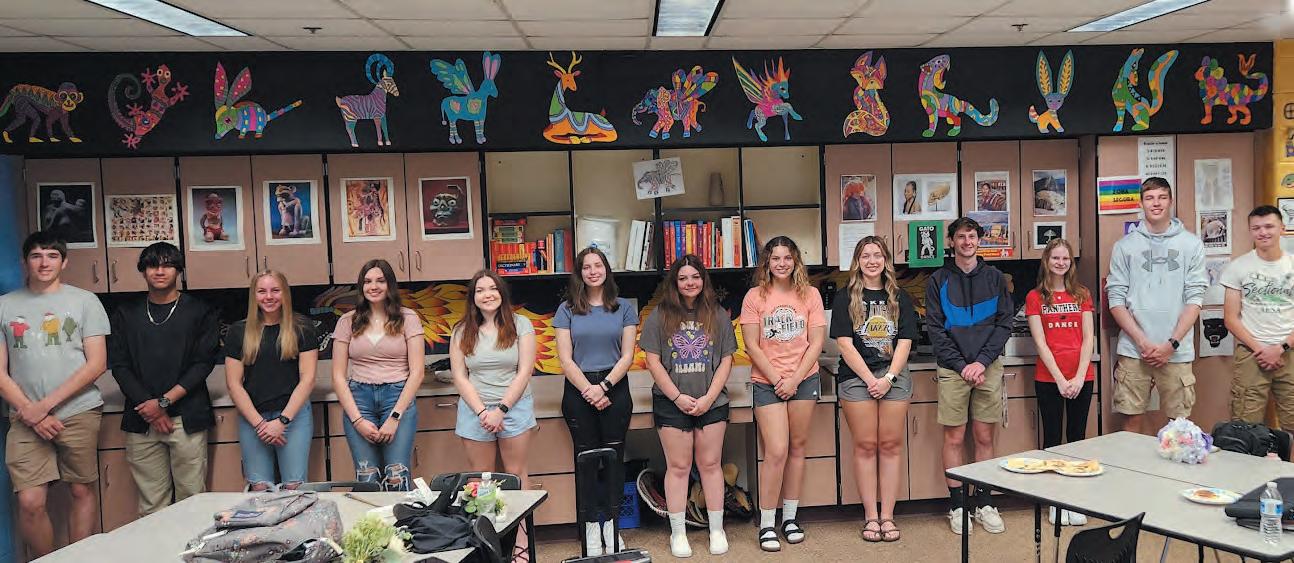 Mrs. Abell, left, LilianaGarland, Mischa Andersonand Brody Morgan assisted with the bake sale during the campuswide Community Service Day on Thursday, May 4. Middle and highschool students and staff spent theday volunteeringwith local organizations in the district andhosted a bake sale and car wash at the schoolwith all proceeds going to the Prophetstown family who lost their home ina fire April 24.