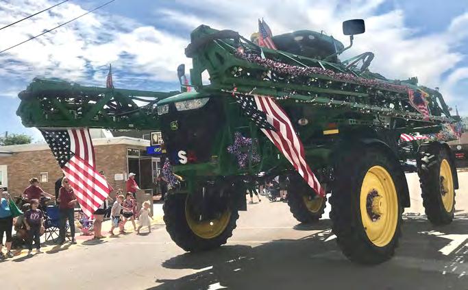 ABOVE LEFT: American Legion Post 582 members and young volunteers lead the Parade of Veterans during Erie’s Memorial Day parade Monday, May 29. Community veterans were escorted in classic cars and golf carts through the village and to the Erie Cemetery for the service. ABOVE RIGHT: Erie’s American Legion Post 582 members carry a large American flag during the start of the 137th annual Memorial Day parade Monday, May 29. ABOVE: A John Deere sprayer fitted with flags and patriotic décor drives through the Erie triangle Monday, May 29, during the annual Memorial Day parade.