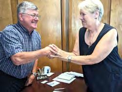 Photo provided by Advent Christian Church Leo Stewart, Advent Christian Church board chair, congratulates Pastor Diana Verhulst after she accepts the call to lead the church.