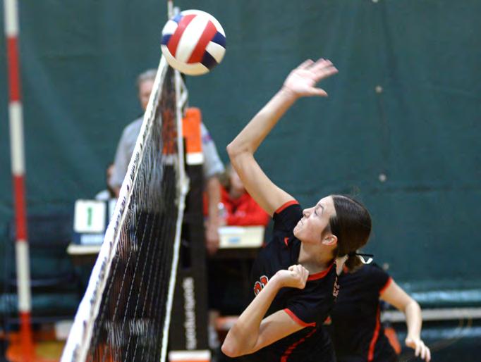 erie-Prophetstown’s Peyton umstead, Lauren abbott, a shlyn Johnson, Kaylee Keegan, b r ynn b rown and Jamie Neumiller celebrate the championship match point against rock Falls on oct. 31 at the Class 2 a sterling Newman regional. more photos on page 3. story on page 10.
