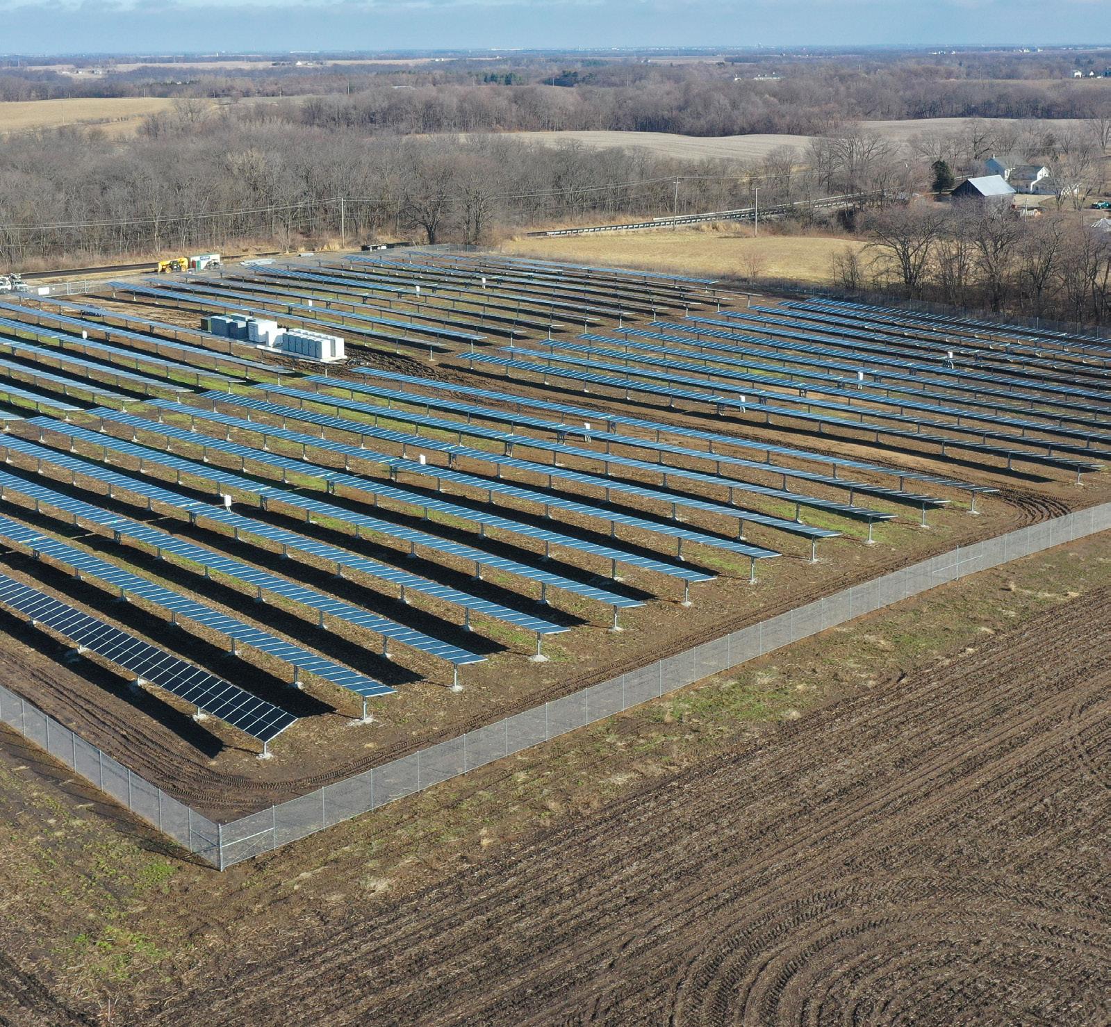 Aerial views of the solar farm located in the 9900 block of Illinois Route 71 on Jan. 9 in Granville. The solar farm project construction is close to completion. When finished, The Corn Belt Granville substation will provide energy to 650 members.