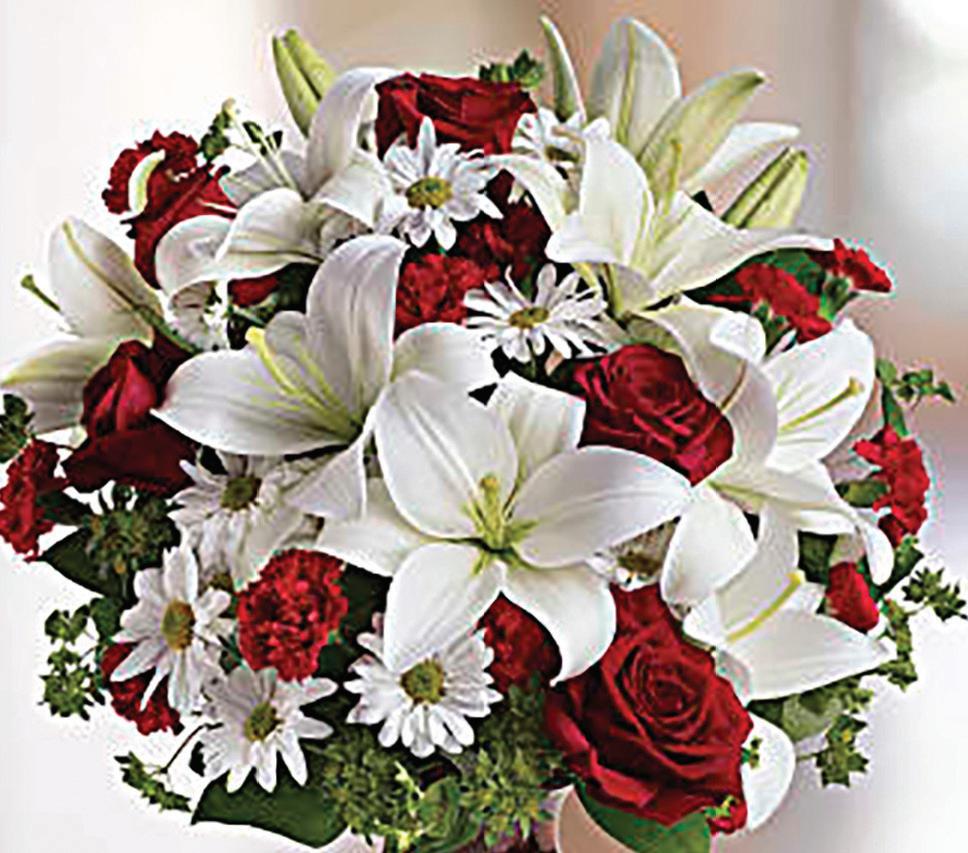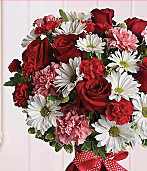 Whether for your significant other or your sister, aunt, or grandmother, this delightful floral gift is a sweet way to say “I love you.” Sweet price, too. The charming bouquet includes: white daisy spray chrysanthemums, pink carnations, red miniature carnations, red roses accented with fresh greenery. SKU # T11Z100C