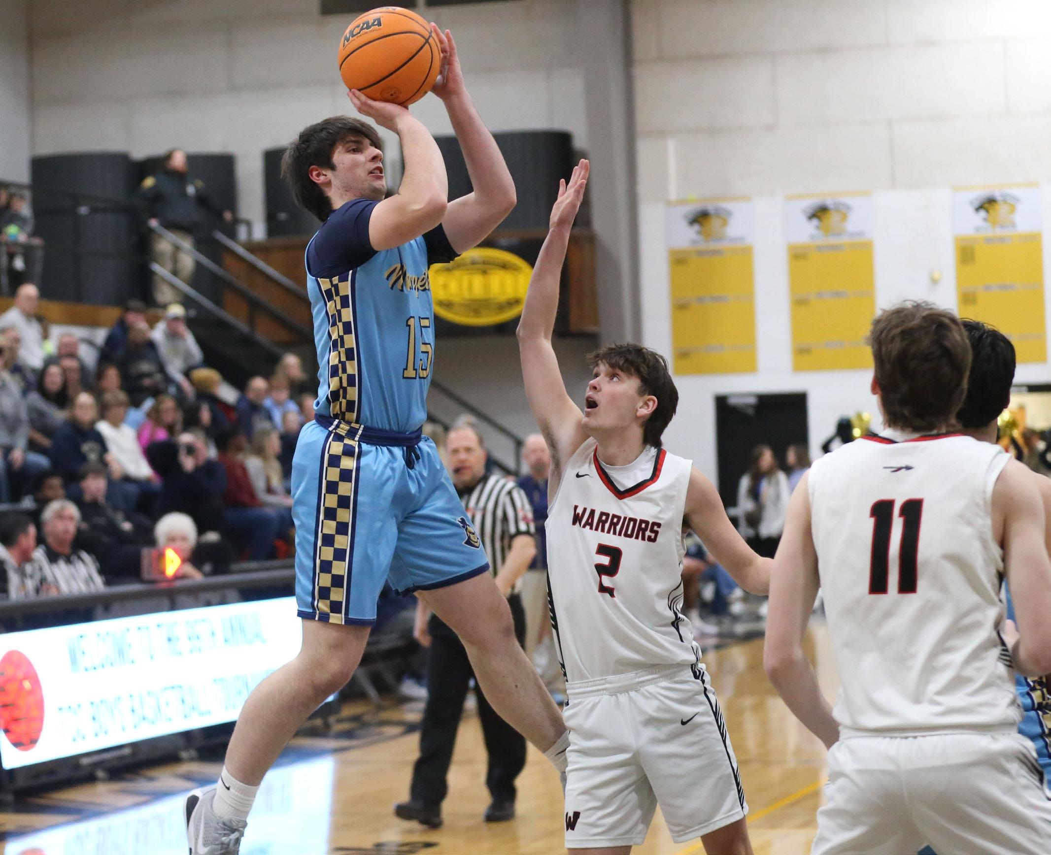 The Marquette boys basketball team got off to a solid start in Friday’s championship of the 99th annual Tri-County Conference Tournament against rival Woodland in R.M. Germano Gymnasium at Putnam County High School.