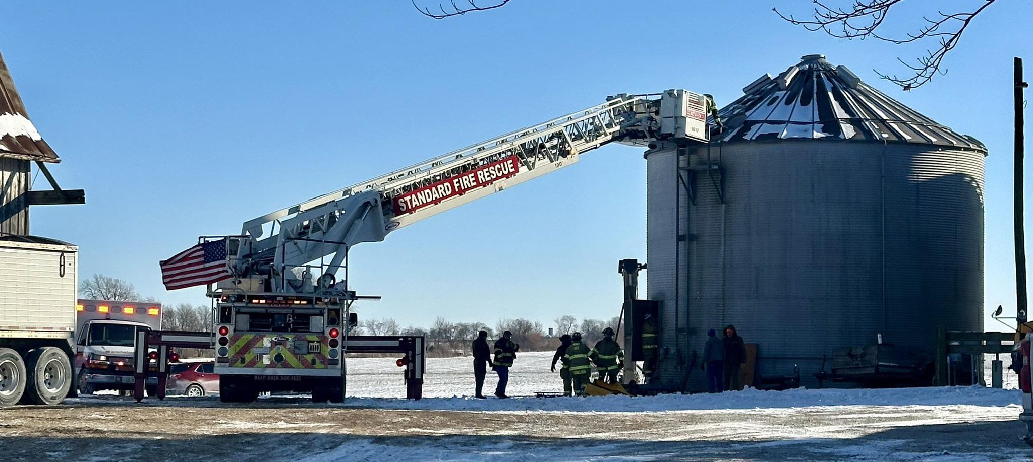 La Salle firefighter Mitch Walter lifts a hose in the frigid cold to fight a fully engulfed house fire in the 800 block of Bucklin Street on Jan. 23 in La Salle.