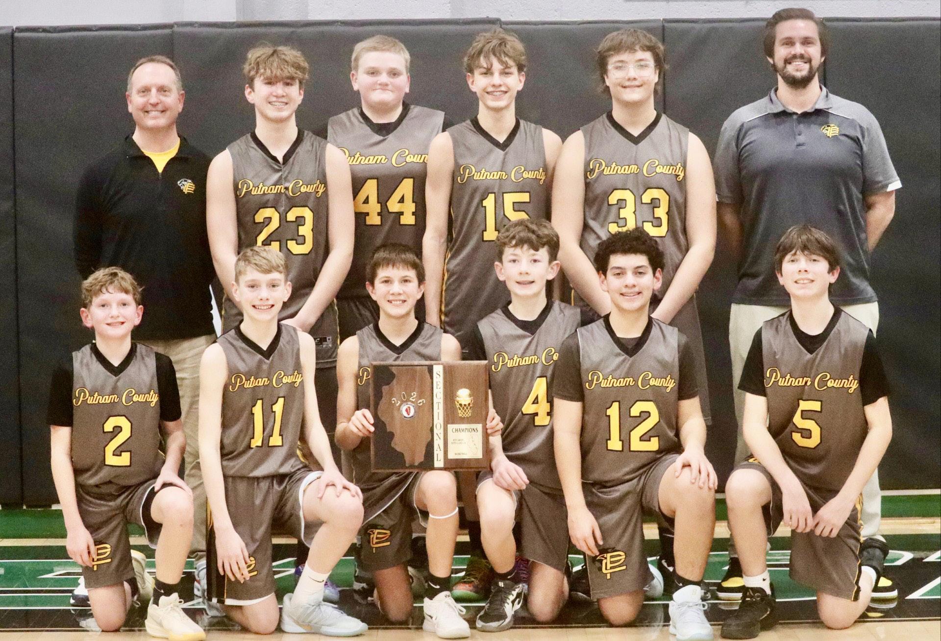 The Putnam County eighth grade boys basketball team captured the 2A Wethersfield Sectional, edging Serena 44-42 on Monday, Feb. 2.
