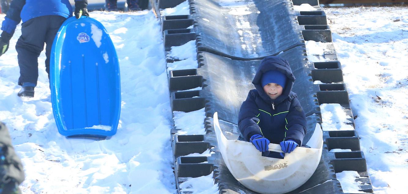 LEFT: Jonas Karina of La Salle slides down a toboggan run Jan. 31 during the Lowaneu Cub Scout Yukon at Hall Township Echo Bluff Park in Spring Valley.