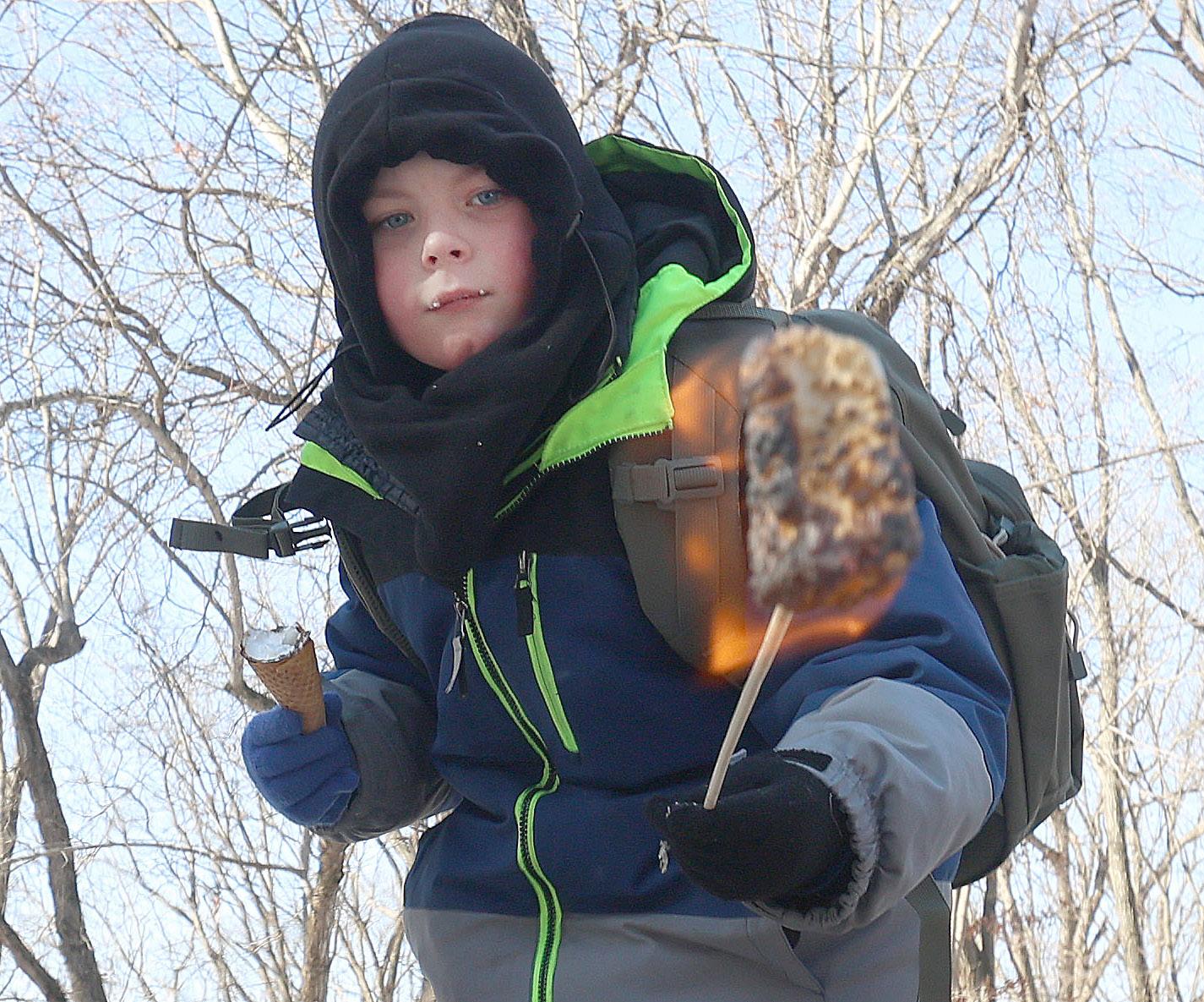 ABOCE: RJ Havenar of Mendota toasts a marshmallow Jan. 31 while making s’mores during the Lowaneu Cub Scout Yukon.