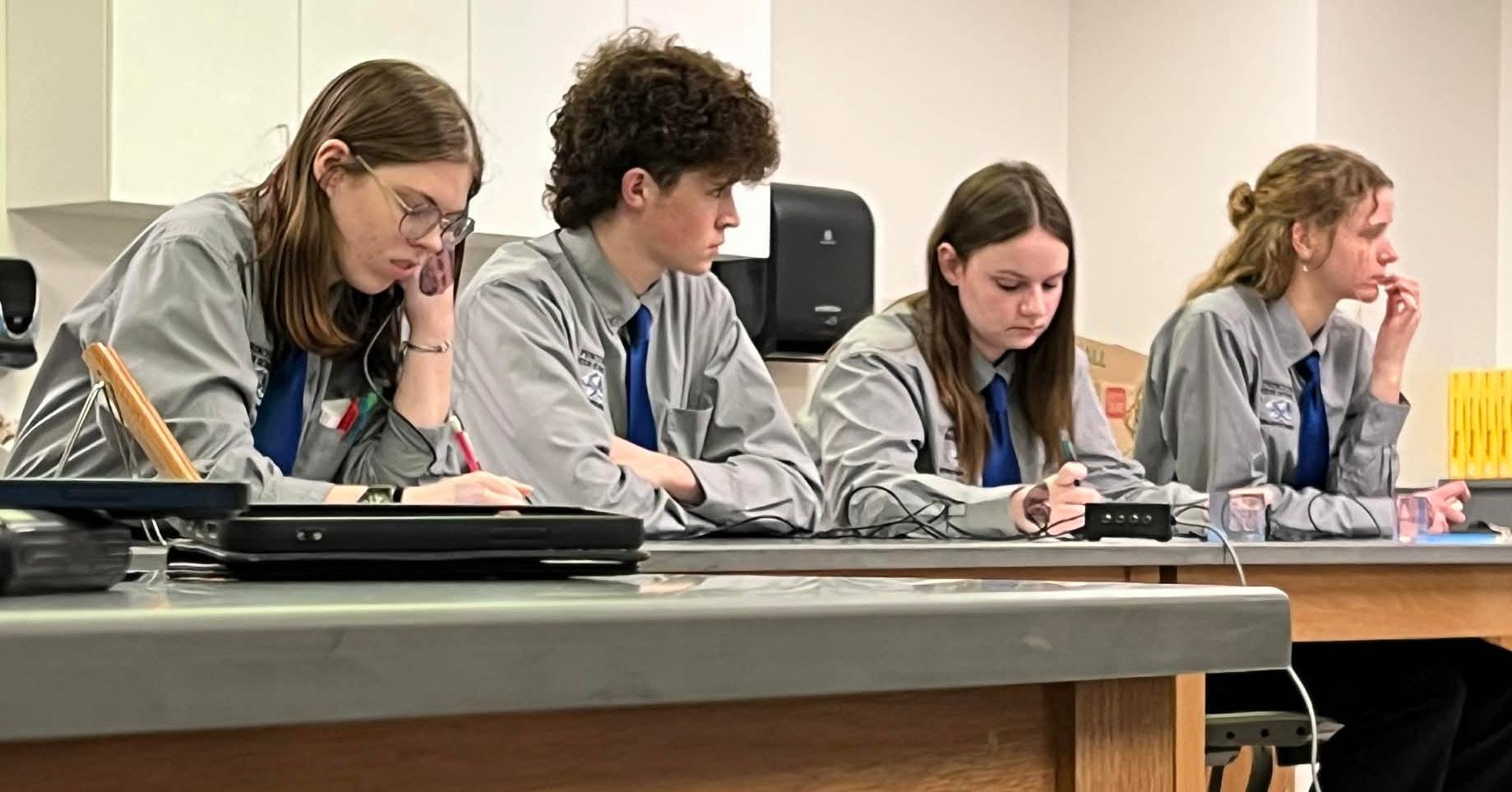 Compeer Financial officers Jacob Chapman and Evan Wixom, Compeer Giving manager Karen Schieler, and insurance officer Ryan Leifheit presenting a