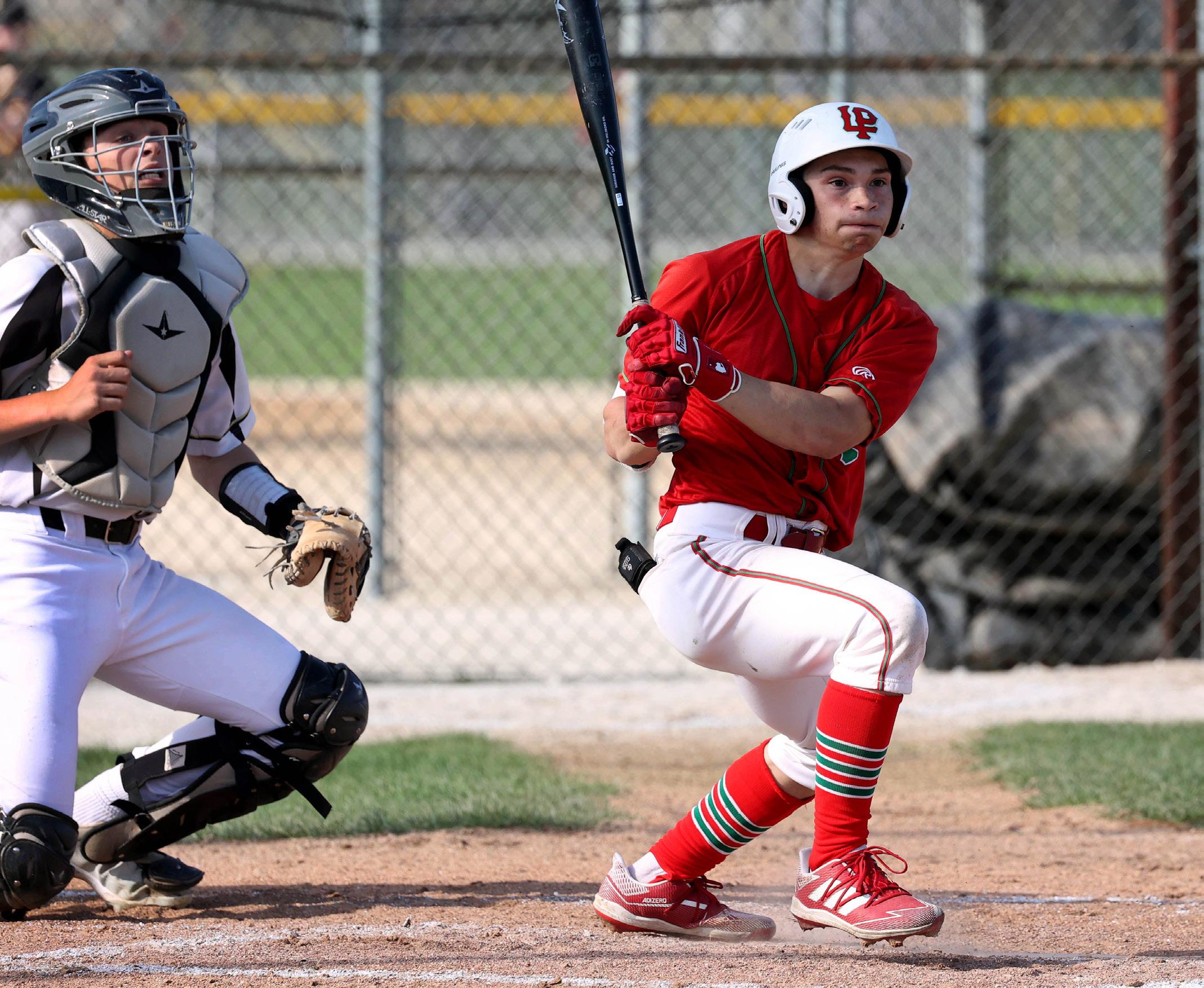 Adrian Arzola raps a hit during his senior season at La Salle-Peru in 2025. Arzola is a freshman at IVCC and is expected to be a contributor for the Eagles.