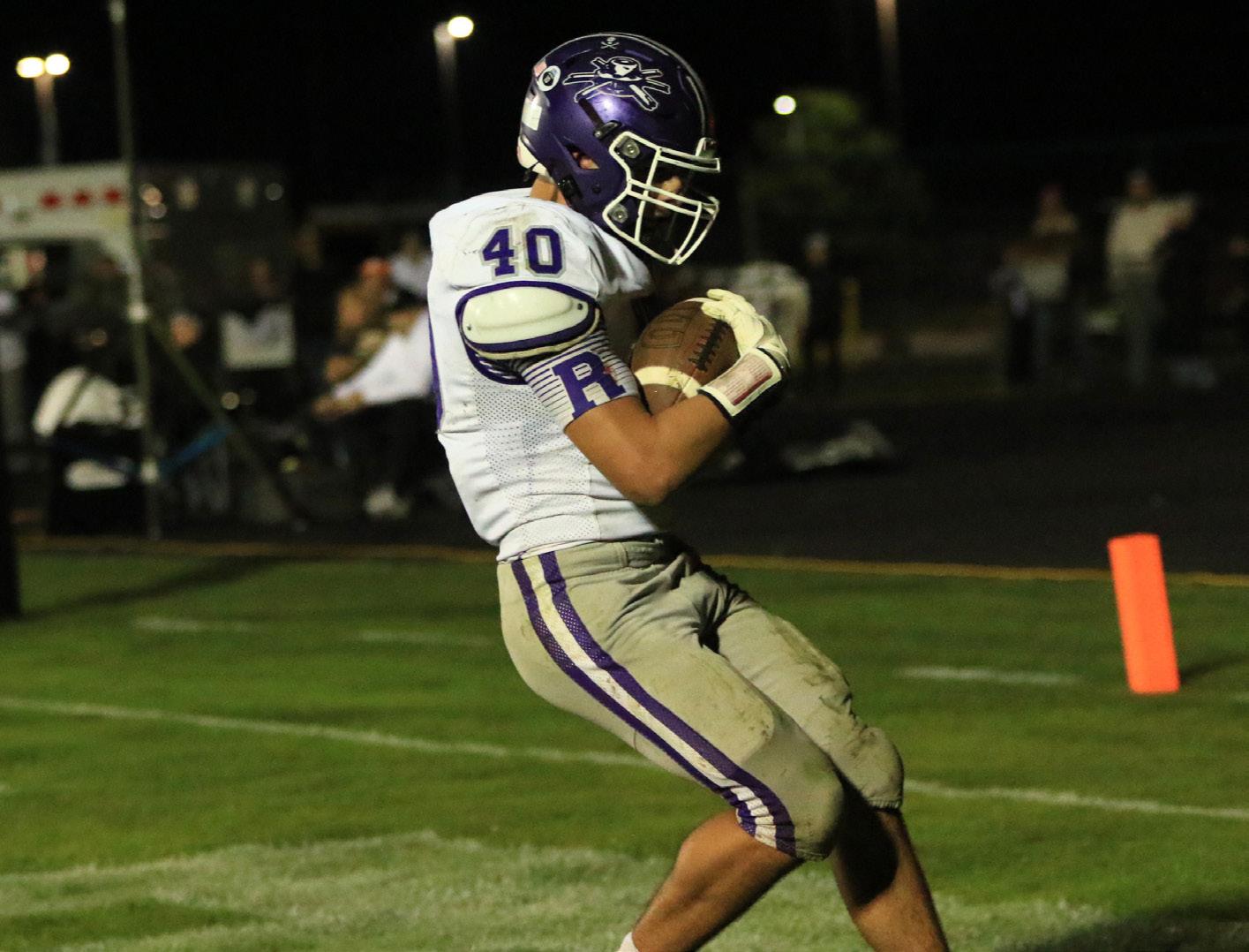 Photo provided by Marcy DeLille Rochelle’s Roman Villalobos scores a touchdown during the Hubs’ game with Kaneland on Friday, Oct. 10.