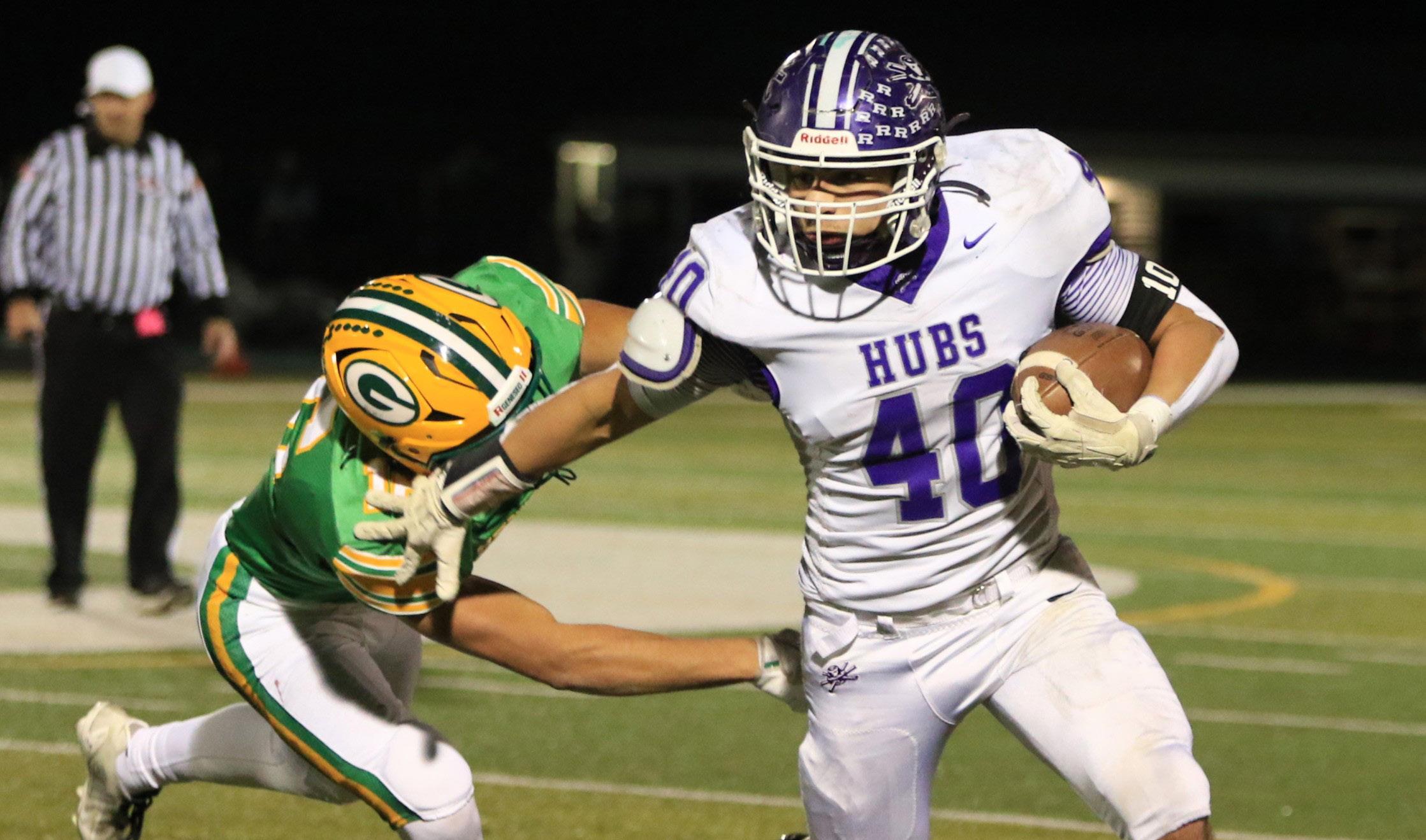 lead after the opening eight minutes as Mason Ludwig sank a pair of 3-pointers and Kasin Avila added five points. The Hubs then pushed the advantage to 35-17 at the intermission as Brody Bruns, in his second game back from injury, scored six points and Van Gerber five points.