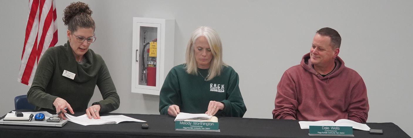 Jeff Helfrich Flagg-Rochelle Community Park District Executive Director Jackee Ohlinger (from left) and Commissioners Melody Worthington and Dale Wells participate in a meeting Monday, Jan. 19, at The REC Center in Rochelle.