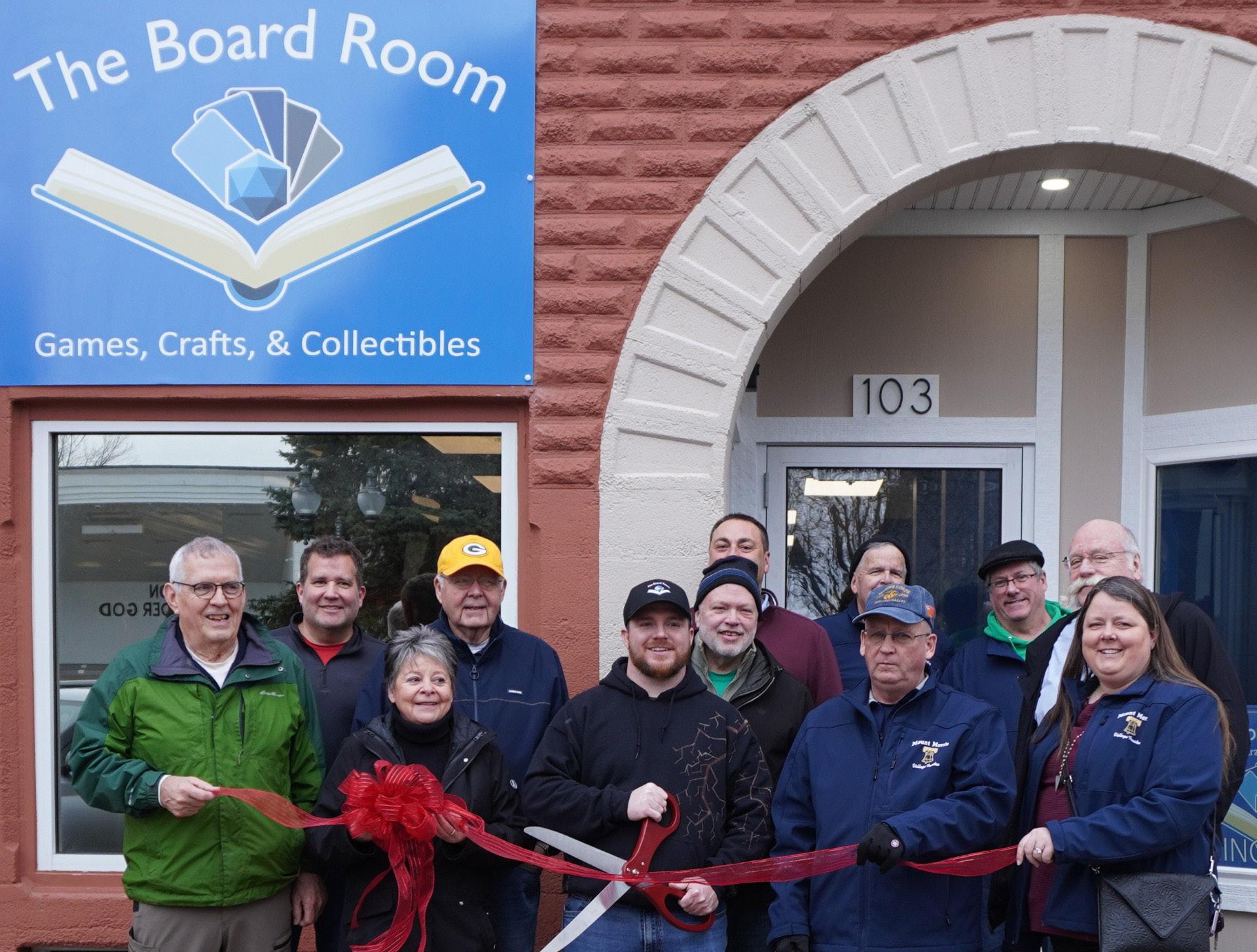 The ribbon cutting signaled the official opening of The Board Room – Games, Crafts & Collectibles, a place to play and purchase trading cards and tabletop games.