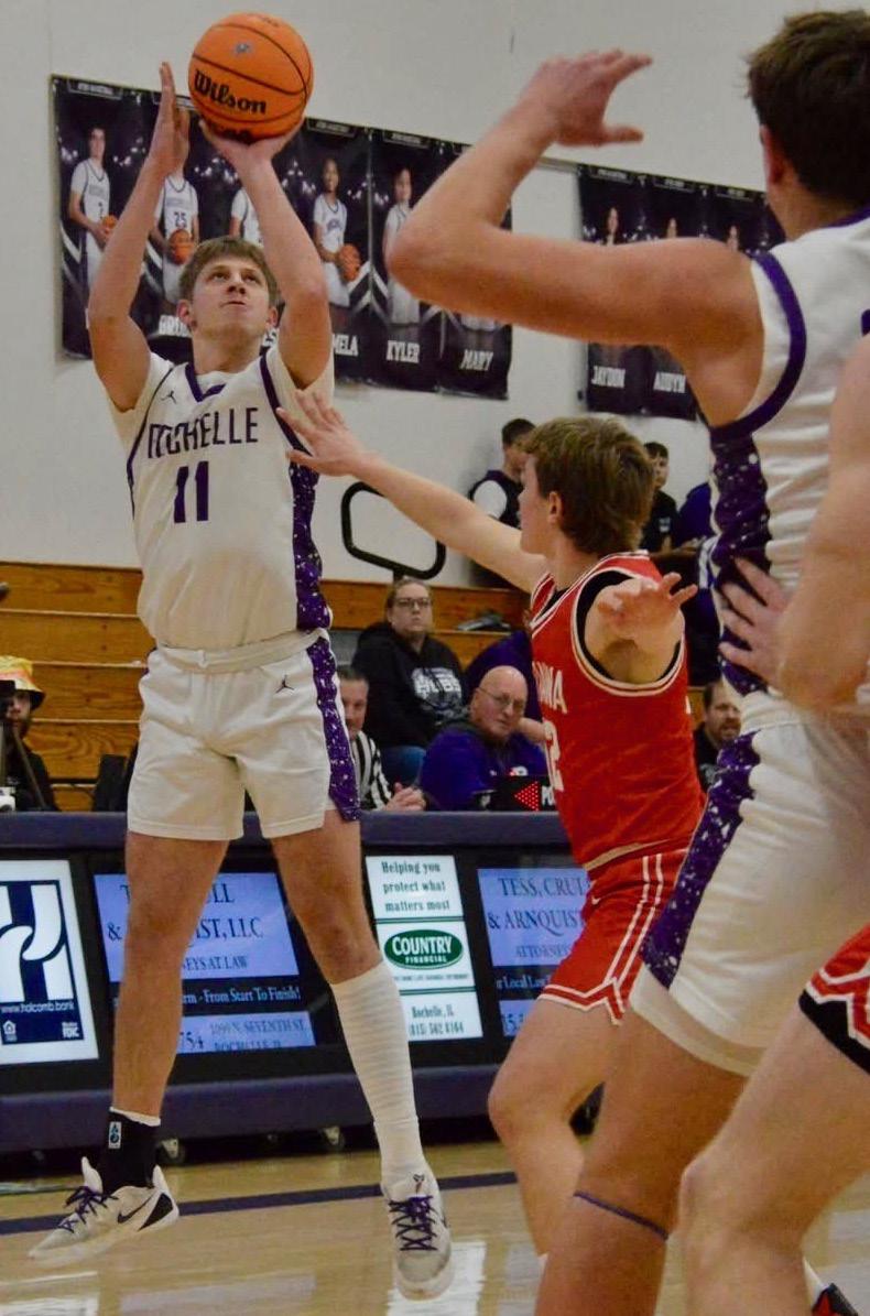 Rochelle’s Brody Bruns hit a three-pointer at the end of regulation as the Hubs overwhelmed Ottawa, 57-55, on Friday, Jan. 30, at RTHS / 31