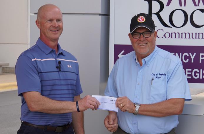 On Wednesday, Oct. 1, Rochelle Mayor John Bearrows (right) presented a $500 check to Brent Ohlinger, the