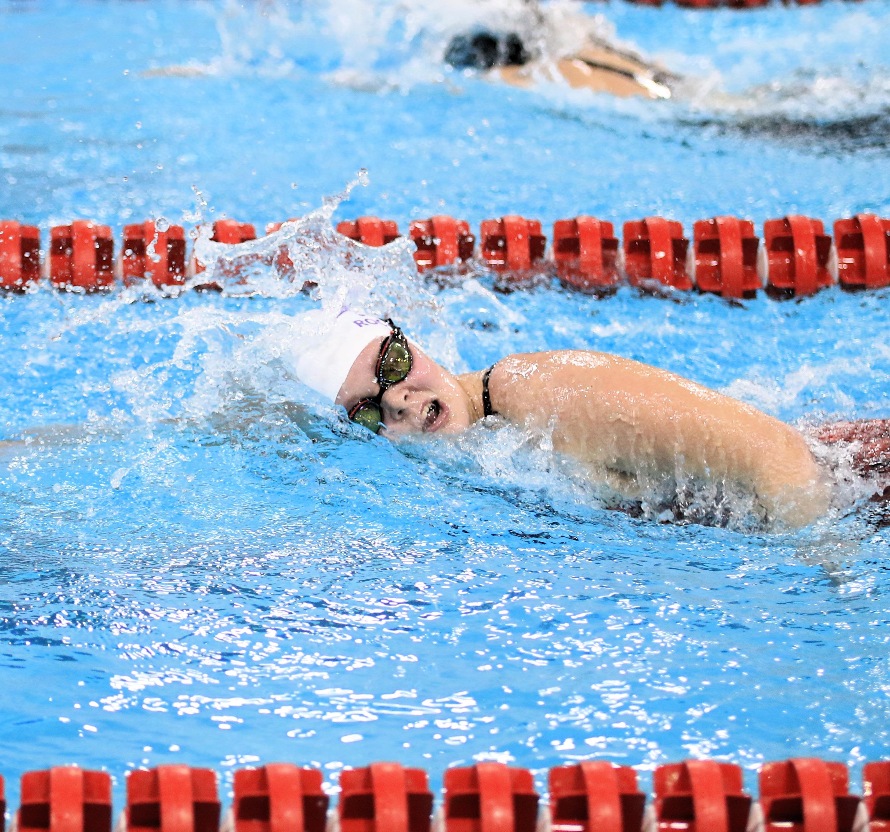 ABOVE: Rochelle sophomore Josie Slattengren took fifth in the 200 freestyle and sixth in the 500 freestyle at the sectional meet Saturday, Nov. 8 in Rockford. BELOW: Rochelle sophomore Josie Slattengren poses for a picture.