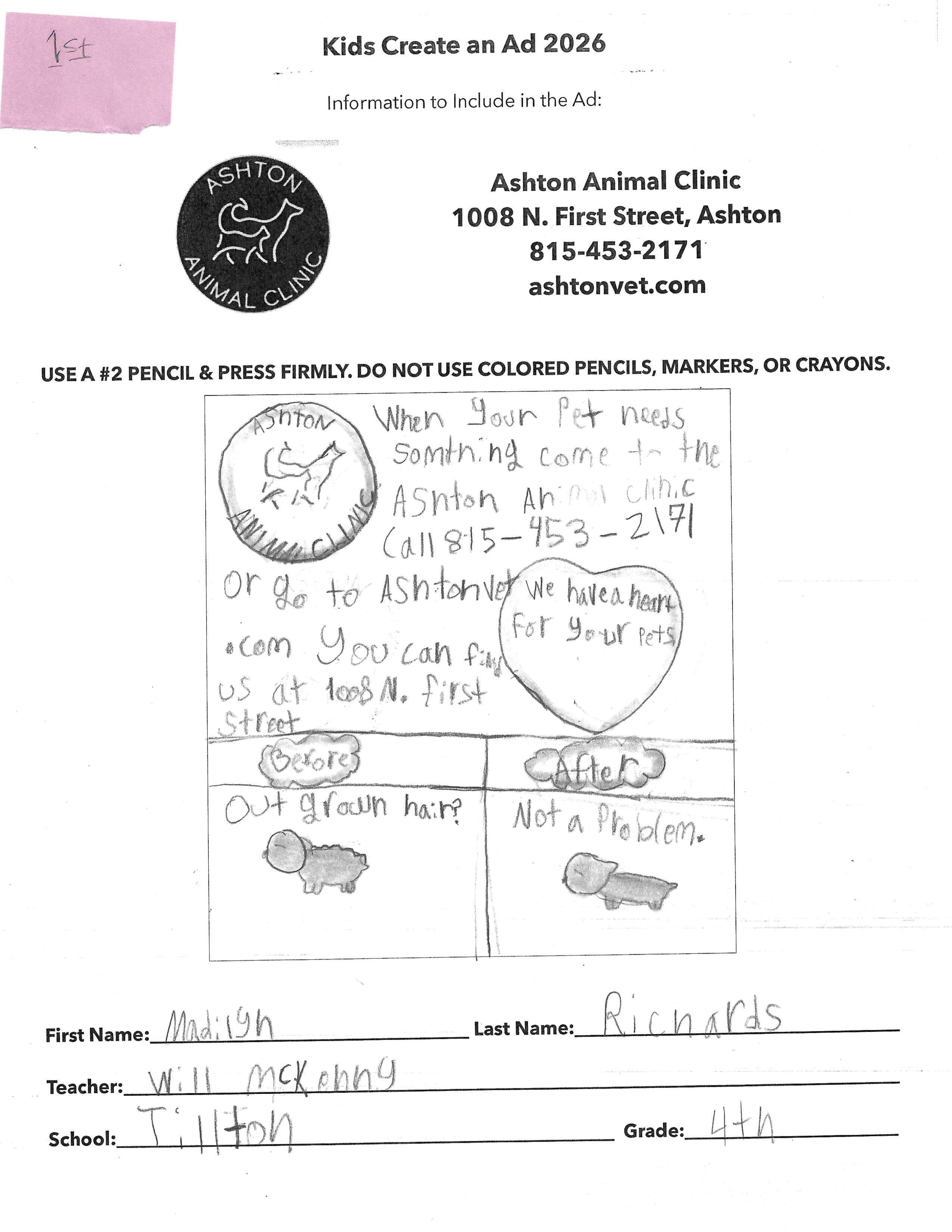 ASHTON ANIMAL CLINIC - TAYLOR G. - 4TH GRADE - TILTON