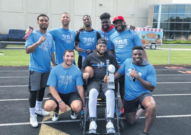 On August 20, the community came together in support of Park Forest Police Officer and MAP member Timothy Jones, severely injured in the line of duty in 2016. Proceeds and donations from participants, sponsors, athletes, and volunteers helped fund the purchase of aPowerPlate to assist Jones in exercise towardwalking again. Agroup of Jones’ former college teammates, the UIndy Legends, took home the championship title this year.The tournament was asmashing success and TimStrong#204 is excited to have a triumphant returnnextyear