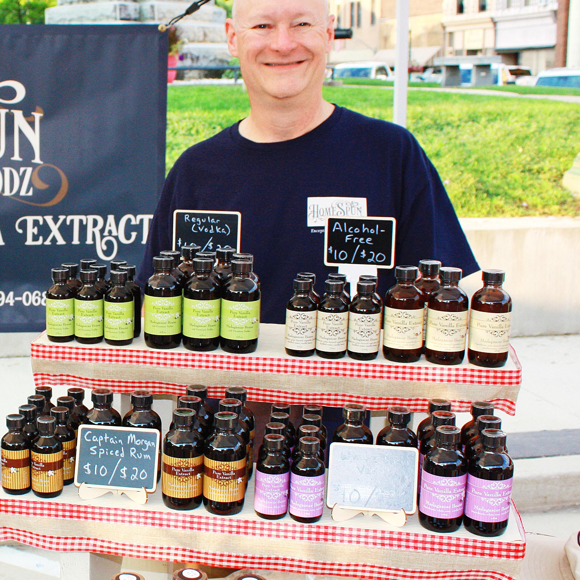 Tim LeClere took some time on his hands and turned it into vanilla, teaching himself how to make the favored flavor of cooks everywhere. Today he and his wife Jolene sell the tasty teaspoon treat through their home business , Homespun Goodz. Tim is seen here at the Mount Carroll Farmers Market, a frequent stop for the couple.