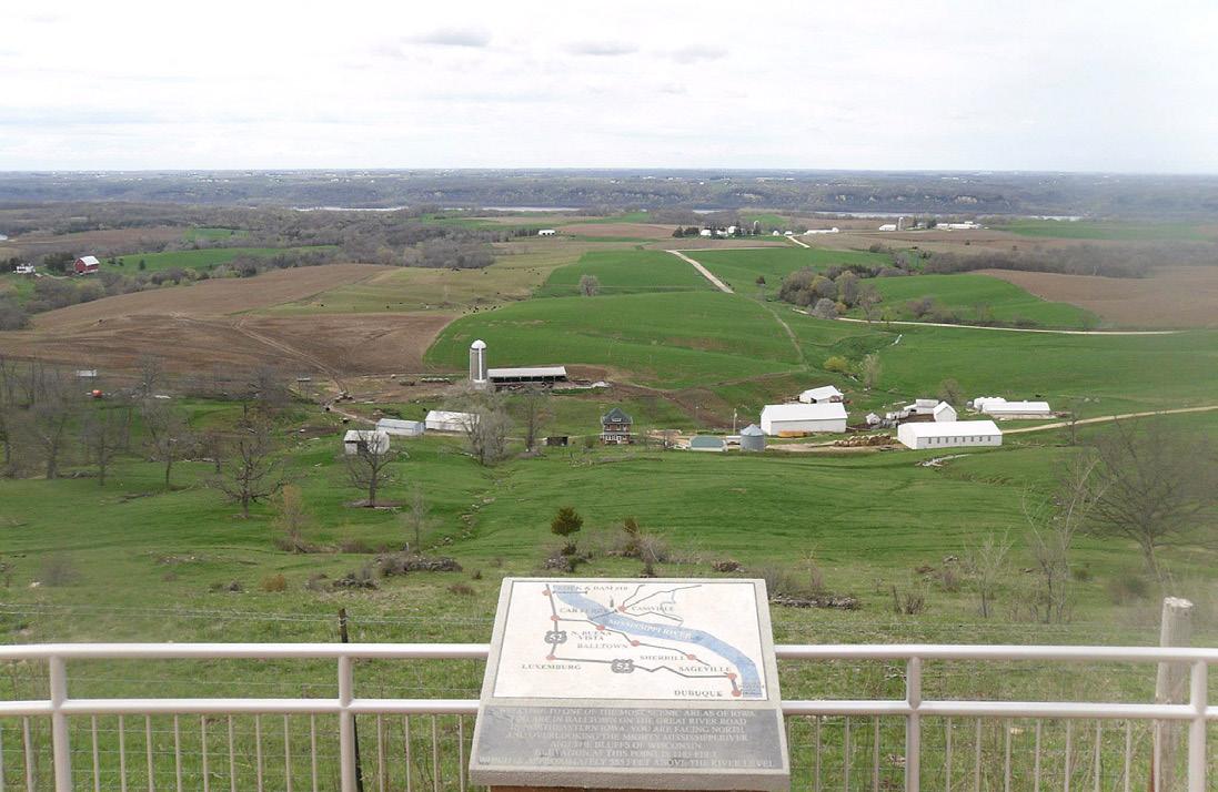 HARPERS FERRY, IOWA, is located on a sand plain along the Mississippi River, along the state’s Great River Road. This treecovered bluff is located just north of town. If you’re in the area, one of the largest concentrations of Indian mounds in the Upper Mississippi River region is located nearby, at Effigy Mounds National Monument. For more info on Harpers Ferry, go to harpersferryiowa.com,