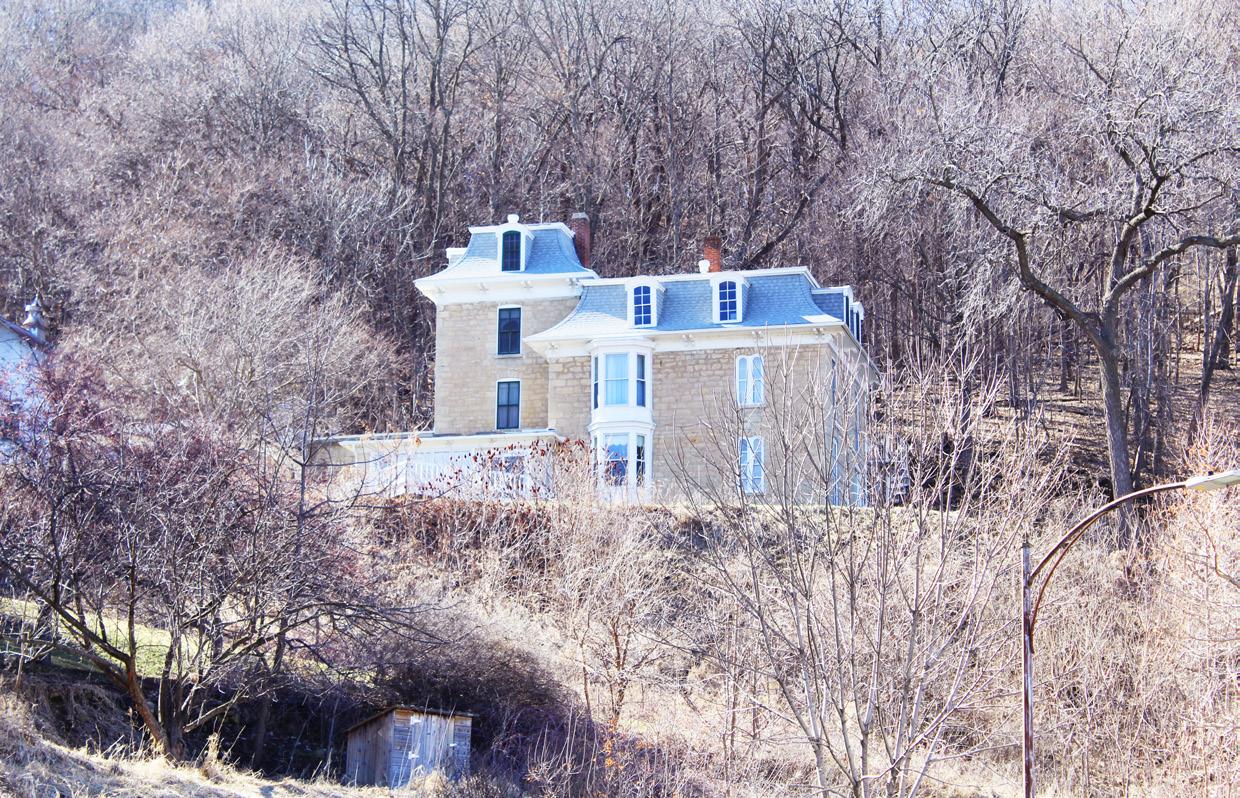 Owing to the Driftless Region’s abundance of limestone deposits, many homes and buildings were built from the stone, like this impressive home in LANSING, IOWA. The city bills itself as the town where “Main Street meets the Mississippi.” The city offers activ- ities for lovers of the outdoors, a downtown business district that’s on the designated a National Historic District by the National Register of Historic Places, and more. Go to lansingiowa.com for more information.
