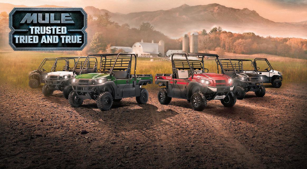KAWASAKI CARES: READ OWNER’S MANUAL AND ALL ON-PRODUCT WARNINGS. ALWAYS WEAR PROTECTIVE GEAR APPROPRIATE FOR THE USE OF THIS VEHICLE. NEVER OPERATE UNDER THE INFLUENCE OF DRUGS OR ALCOHOL. PROTECT THE ENVIRONMENT. THE KAWASAKI MULE™ SIDE X SIDE IS AN OFF-HIGHWAY VEHICLE ONLY, AND IS NOT DESIGNED, EQUIPPED OR MANUFACTURED FOR USE ON PUBLIC STREETS, ROADS OR HIGHWAYS. OBEY THE LAWS AND REGULATIONS THAT CONTROL THE USE OF YOUR VEHICLE. ©2019 KAWASAKI MOTORS CORP., U.S.A.