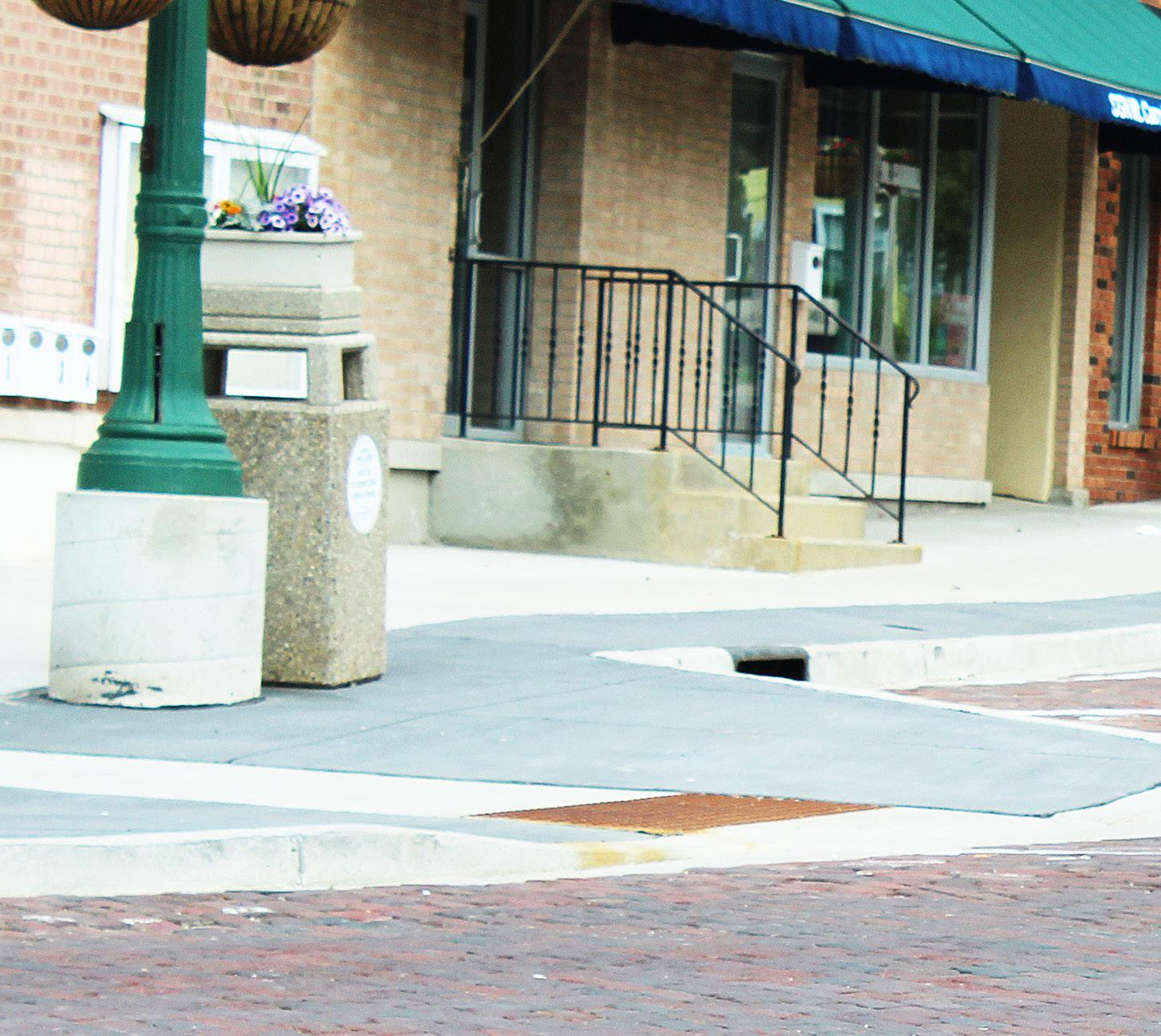 Hidden from sight of motorists on Route 38 is an older bridge below and off to the south side of the current bridge. The Lincoln Highway cuts through the west and east sides of the village, but Route 38 was built in 1926 (then called U.S. Route 330) to pass through the northern part of town and off of the esteemed highway. The old bridge was later abandoned in favor of the current rerouting.