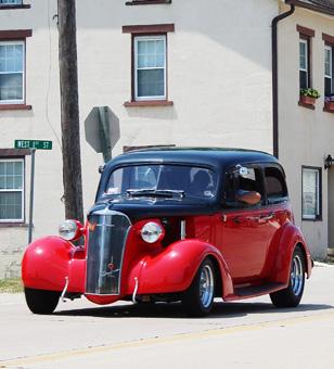 This 1936 Plymouth P1 Business coupe owned by Bill Bartels of New Glarus, Wisconsin, was the oldest vehicle in the Car Show. Its “sister” model is the P2 Deluxe coupe with four doors.