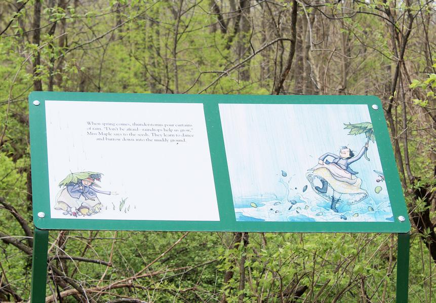 Larry Dunphy Storybook Trail also is located at the east edge of the Franklin Creek State Natural Area, where children can walk along and read a story — “Mrs. Maple’s Seeds,” by Eliza Wheeler — posted on signs along the path. The trail is dedicated to Dunphy, co-owner of the Books on First in downtown Dixon, who passed away in 2019.