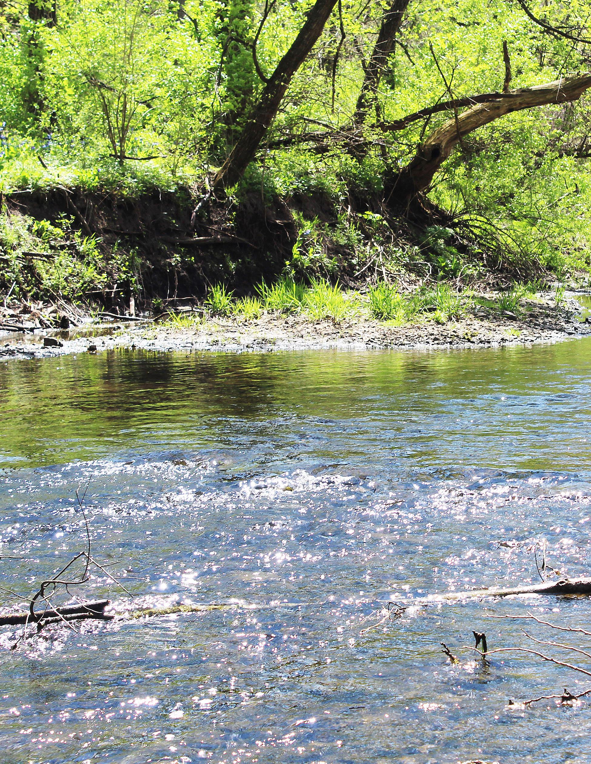 The creek’s watershed moments help channel rainfall and snowmelt where it needs to go, playing an important role in agriculture along the way as it takes in water from farm fields south of Franklin Grove; it supports a diverse ecosystem of flora and fauna; and in places where the public can get a closer peek at the creek, it provides a beautiful backdrop for hikers and nature-lovers.