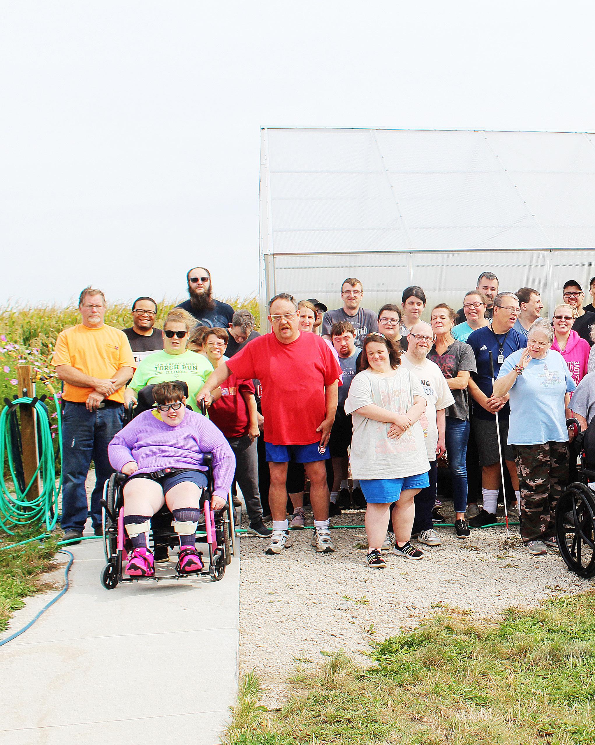 Clients and staff at Rolling Hill Progress Center, in front of their new greenhouse, which is slated for completion in the spring. CODY CUTTER/ CCUTTER@SHAWMEDIA.COM
