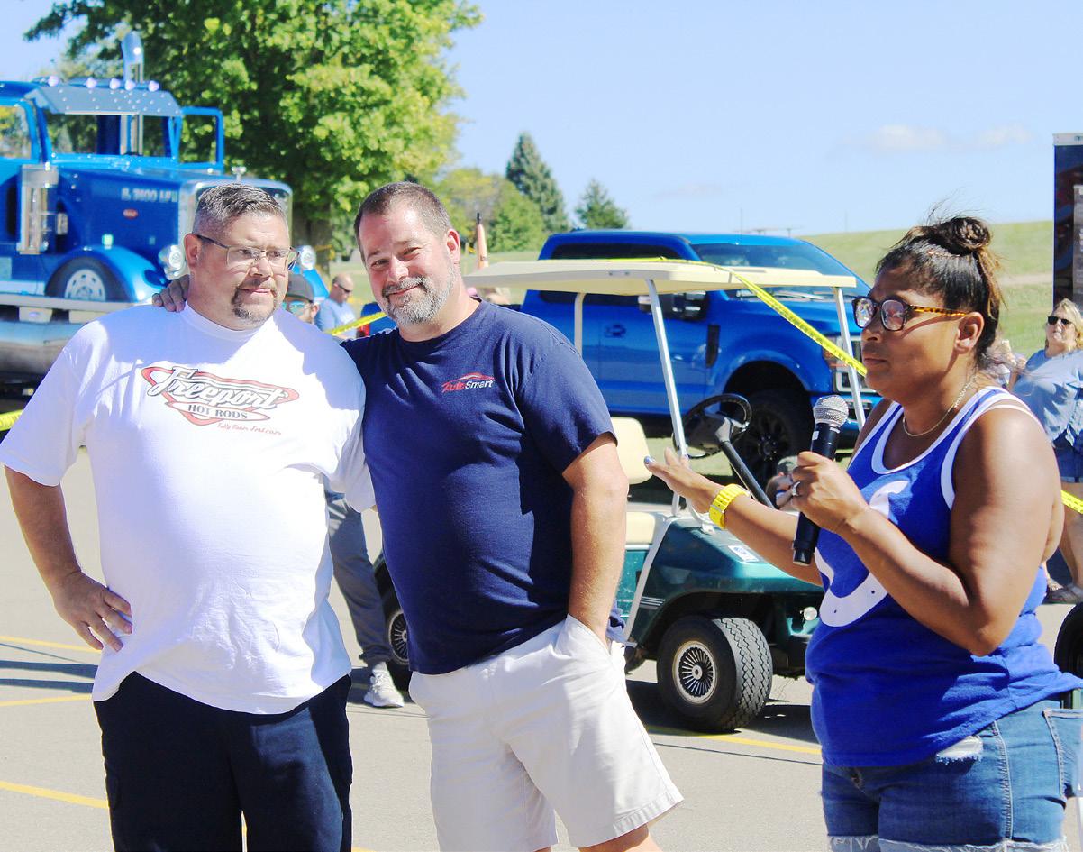 This year’s car show brought 72 vehicles, with some owners bringing more than one. The vehicles were as small as a red and white 1959 NSU Sport Prinz from Alan Wagner of Sterling, to as big as a the one-of-a-kind “Peterboat,” a custom-designed pontoon boot incorporating a Peterbilt semi-truck cab, owned by Ed and Lisa Grillo of Lake Carroll (read all about their boat in September’s Lake Lifestyle). Owners were asked to make a donation to local food pantries as part of their registration, which garnered about $500 between groceries and cash.