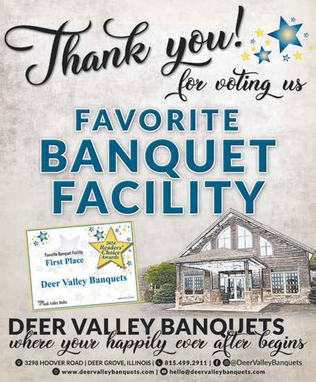 19 READERS CHOICE Sauk Valley Media/ shawlocal.com/sauk-valley • Wednesday, February 28, 2024 Thank You For Voting Us Your Favorite Bakery! SM-ST2144527 Tires, Sporting Goods, Men’s Fashions, Shoes & Pet Store For voting us one of your favorite places to purchase 3913 E. Lincolnway • Sterling 815-625-9028 www.farmandfleet.com SM-ST2143055 Thank You SAUK VALLEY Serving the Sauk Valley Area for Over 40 Years! 815-626-8911 We want to say THANK YOU to everyone who voted for us in the Sauk Valley Readers Choice Awards! SM-ST2145263 SM-ST2142755 (815) 291-8989 Savanna, IL 61074 www.repmccombie.com mccombie@ilhousegop.org District Office 9317B IL Rte.84 Thank You Sauk Valley! REPRESENTATIVE TONY MCCOMBIE 3606 East Lincolnway, Sterling, IL 815-632-3931 or 815-213-7904 Hrs. Mon. - Fri. 9am - 5:30pm Sat. 9am - 3pm and Sun. 10am - 3pm www.butchershopllc.com THANK YOU TO ALL OUR CUSTOMERS FOR CHOOSING US AS YOUR FAVORITE PLACE TO BUY MEAT! Black Angus Beef locally raised and processed here MEAT BUNDLES • GIFT CERTIFICATES • FUNDRAISERS Your Hometown Meat Market Serving Fresh and Frozen Beef, Pork, Chicken, Seafood, & much more SM-ST2144536 THANK YOU SAUK VALLEY District office 101 W 1st St. Suite 501 • Dixon • (815) 561-3690 www.repfritts.com BRADLEY FRITTS State Representative • District 74 SM-ST2144024 NOW BOOKING LODGE RESTAURANT • GIFT SHOPPE BANQUETS & PARTIES OPENING DATE IS FRIDAY, MARCH 1ST, 2024 MUSIC TRIBUTES | DINNER THEATRE | COZY CABINS IN THE WOODS VOTED #1 FOR BRUNCH! VisitWhitePines.com 6712 W. Pines Rd.; Mt. Morris, IL 61054 815.655.2400 www.destinationstravelservices.com Thank You For Voting Us Your #1 Travel Agency! 15 E 3rd St., Sterling IL 61081 | 815.625.3500 SM-ST2141069