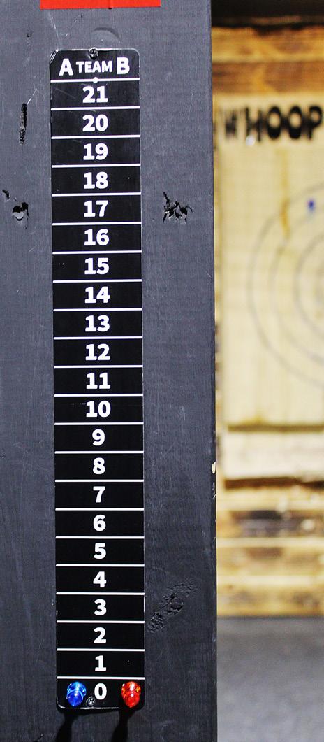 2317 E. Lincolnway, Suite C, Sterling Online: whoopyouraxe.com, or find “Whoop Your Axe - Axe Throwing” on Facebook Contact: 815-213-7493 or whoopyouraxe@ gmail.com AXE-THROWING HOURS 5-11 p.m. Thursday-Friday 11 a.m.-11 p.m. Saturdays Noon-9 p.m. Sundays ADULT GAMING ROOM HOURS 9 a.m.-11 p.m. Thursdays 9 a.m.-1 a.m. Fridays 11 a.m.-1 a.m. Saturdays Noon-9 p.m. Sundays