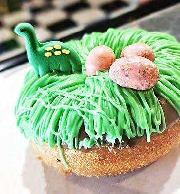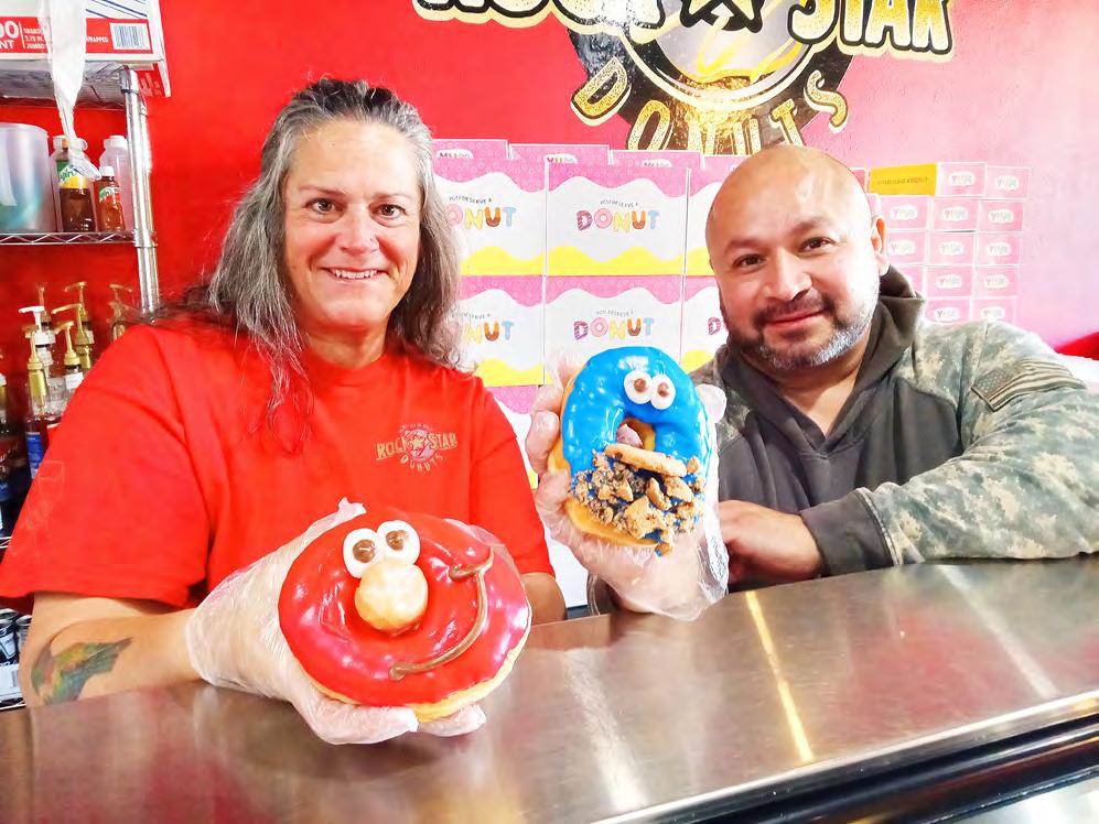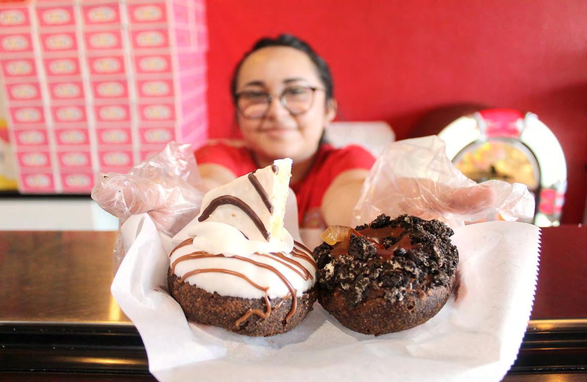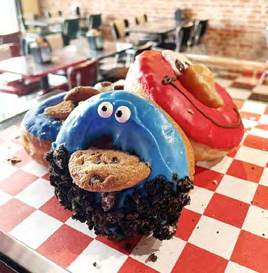 Their shop is like a slice of classic rock and roll come to life. There’s a vintage vibe at Rock Star Donuts — blackand-white checkerboard floors, seating that’s a throwback to a 1950s malt shop, retro signs on the brick walls, vintage music pumped through the speakers. Like their donuts, they’ve taken a classic and made it their own.
